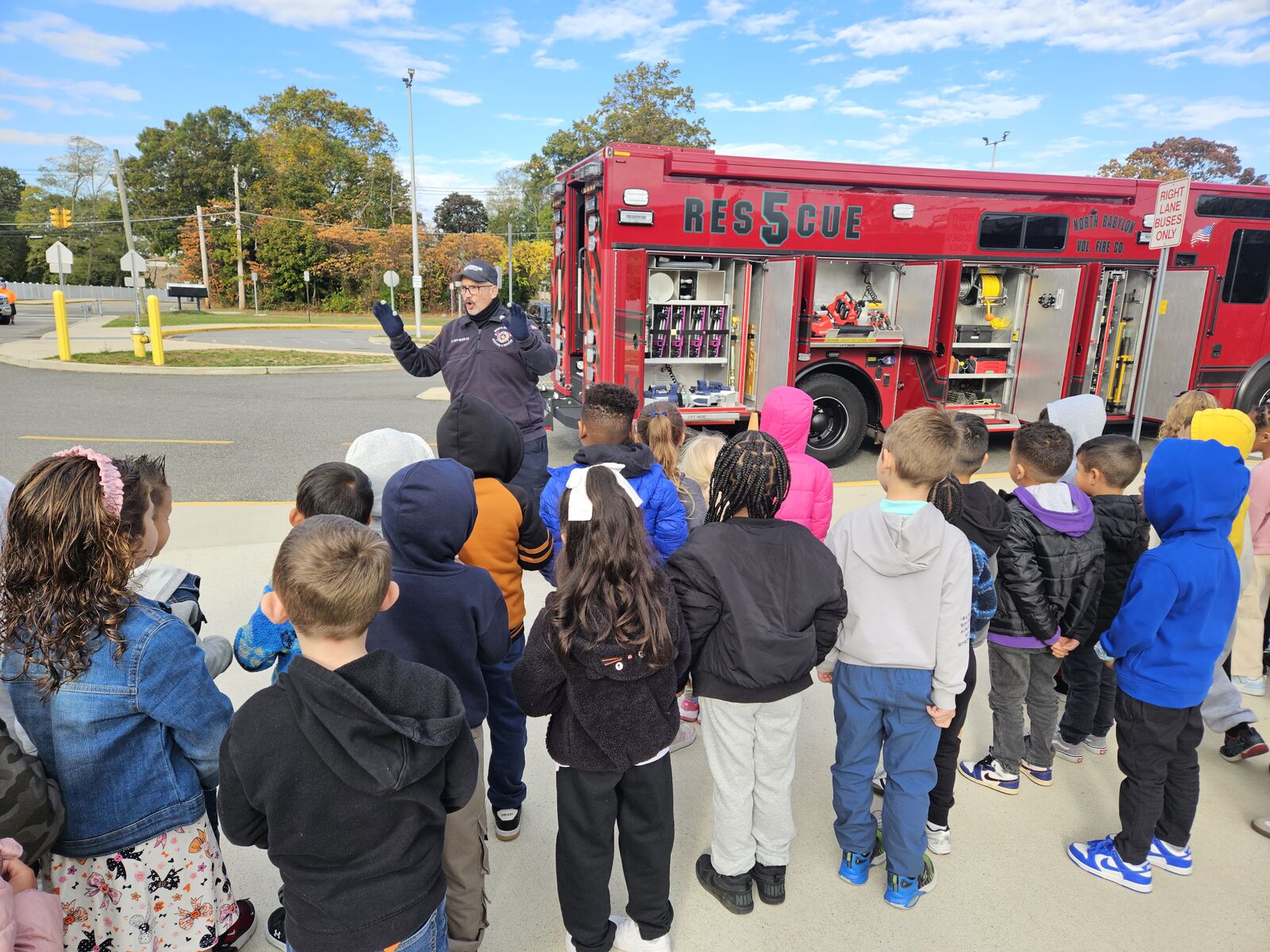 The North Babylon Fire Department visited DeLuca to teach the students